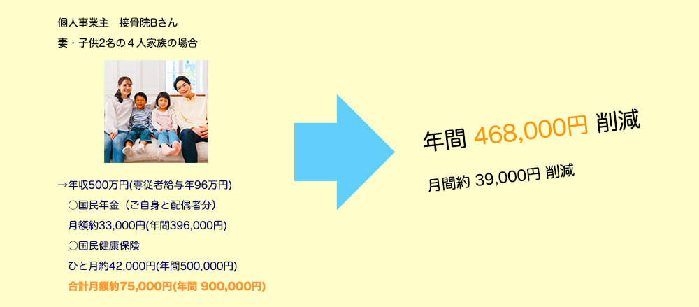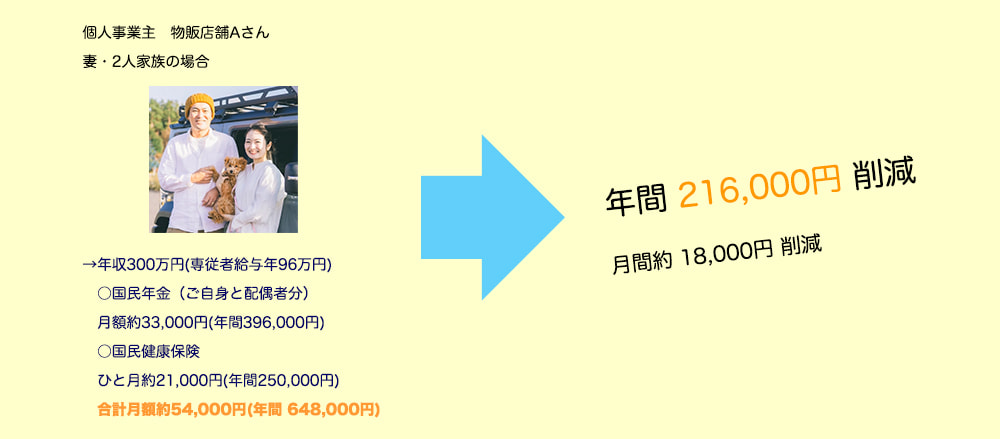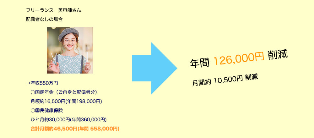 スゴイですね!国民年金+国民健康保険の負担が月8万円だったのが、厚生年金に加入した上で、月3万円程度に下がりました。将来の保障も手厚くなって安心ですし、節約できたお金(60万円)で息子の今後の大学の入学資金に残しておきます。